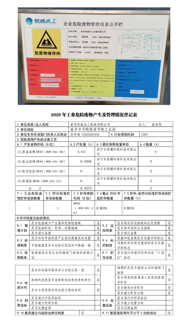 2020年度危废公示