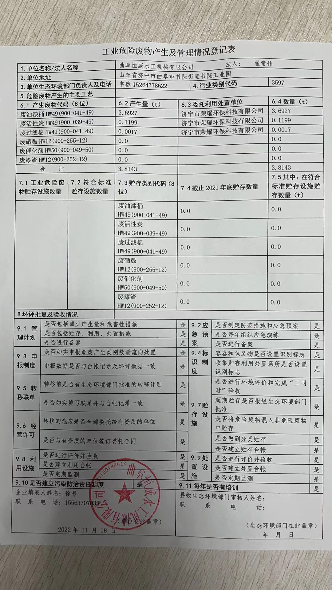 根据《中华人民共和国固体废物污染环境防治法》的要求,产生固体废物的单位,应当依法及时公开固体废物污染环境信息,主动接受社会监督。结合我公司实际情况,现将2021年危险废物污染环境防治信息公开。